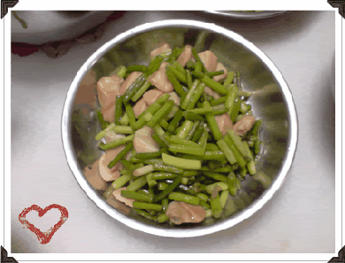 Yesterday we cooked a very sumptuous dinner together. Sway kaw dumpling soup, stired fry chai xin and "garlic flower" with pacific clams. Shared a picture that I took on one of the dishes. Hehe.